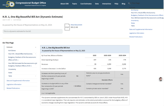 据CBO称,“大而好意思”法案将在改日十年平均推动骨子国内分娩总值(GDP)增长0.5个百分点,从而使好意思国赤字减少850亿好意思元。但该法案也将导致利率飞腾,使联邦债务的利息开销加多4410亿好意思元。