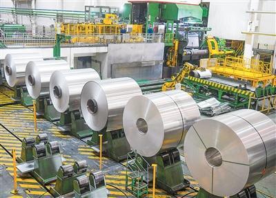 在河南省洛阳市新安县的洛阳万基铝加工有限公司车间,工东说念主正坐蓐一批出口国外的能源电板软包铝箔。张怡熙摄(东说念主民视觉)